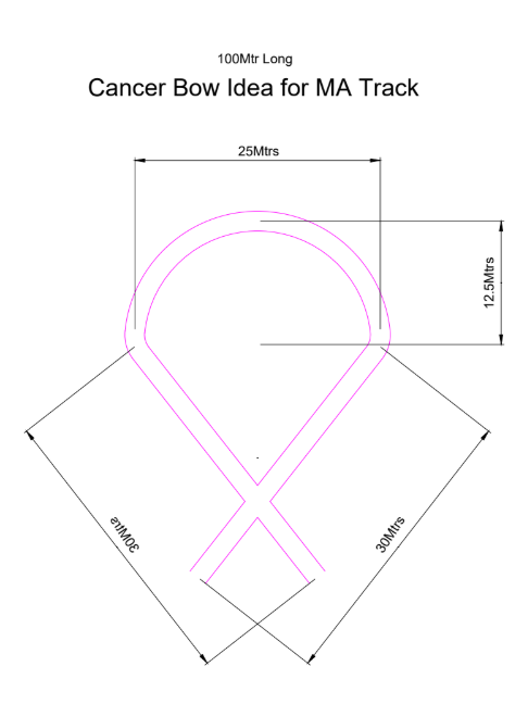 Emma Fayers and Lindsey Boots created a unique MA, using the Cancer Research UK Bow logo, as a template, over a set distance of 100mtrs. The first MA track that crosses paths, that I have heard of!